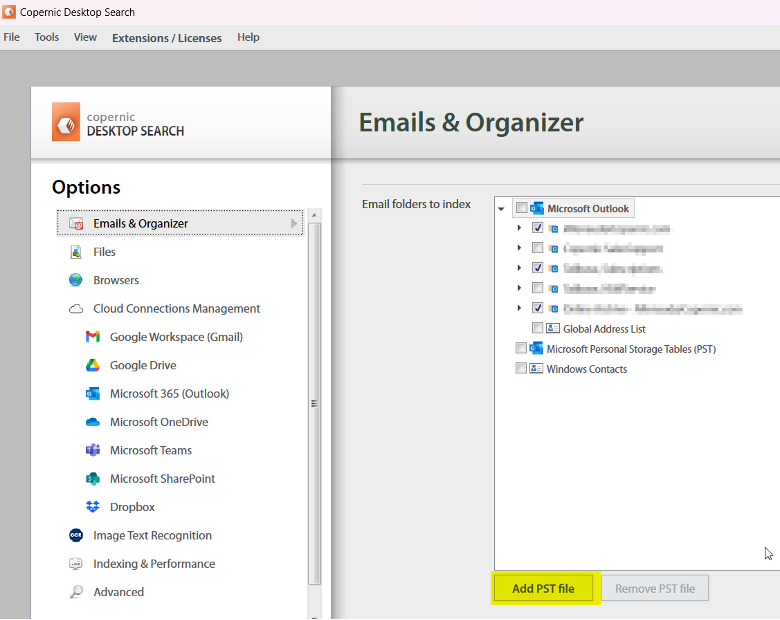 If it does not display as expected after loading, this means that it added an OST file by passing by the option “Add PST file” of the options of Copernic, but this file is already opened in Outlook and Outlook “locked” this file when it is opened.
