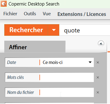 Par exemple, si vous êtes responsable de l’assemblage des devis à la fin de chaque mois, vous pouvez saisir « devis » dans le champ de recherche et ajouter « ce mois-ci » comme amélioration.